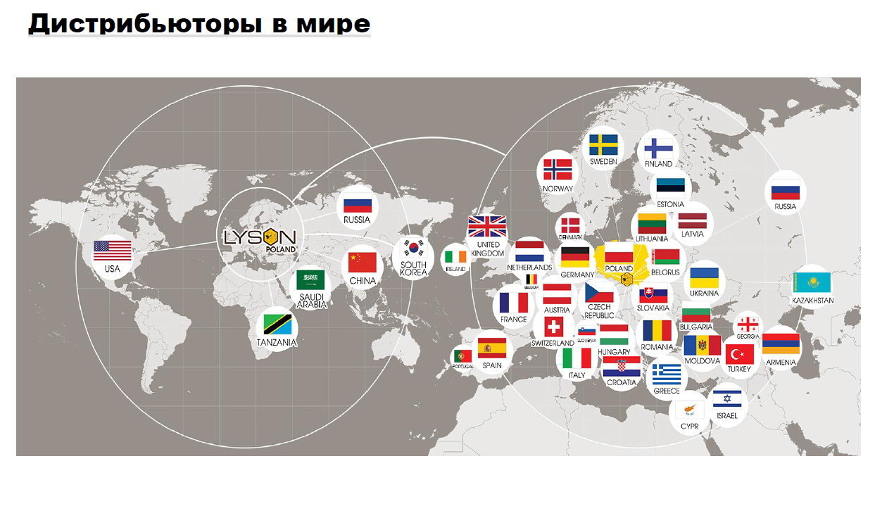 Фірма Lyson бере активну участь у бджолярських конгресах та виставках у Європі та світі, та інтенсивно розвиває свою дилерську мережу, через яку продукція фірми постачається у 44 країни світу.