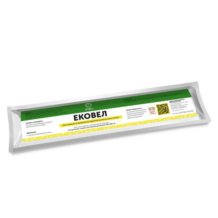 Ековел – картонні смужки насичені ефірними оліями, які використовують для лікування та профілактики варроатозу. Смужки розміром 270×30×1 мм, мають слабкий специфічний запах.
