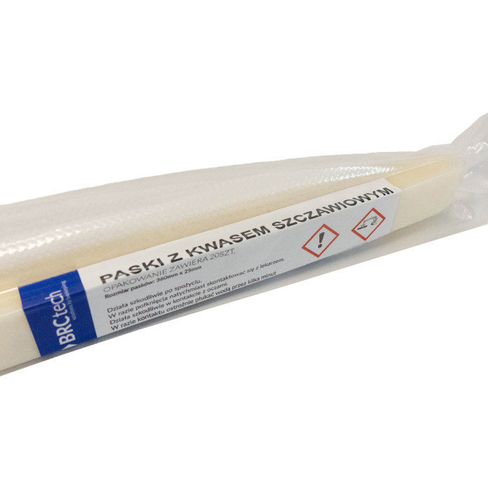 Увага! Після відкриття упаковки смужки слід використати одразу. Зберігати в недоступному для дітей місці. Працювати в рукавичках та окулярах.