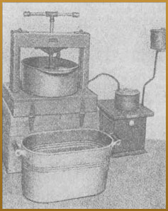 Закінчивши останнє пресування, прес перекидають і зливають всю воду і віск у ванну (мал. 6).