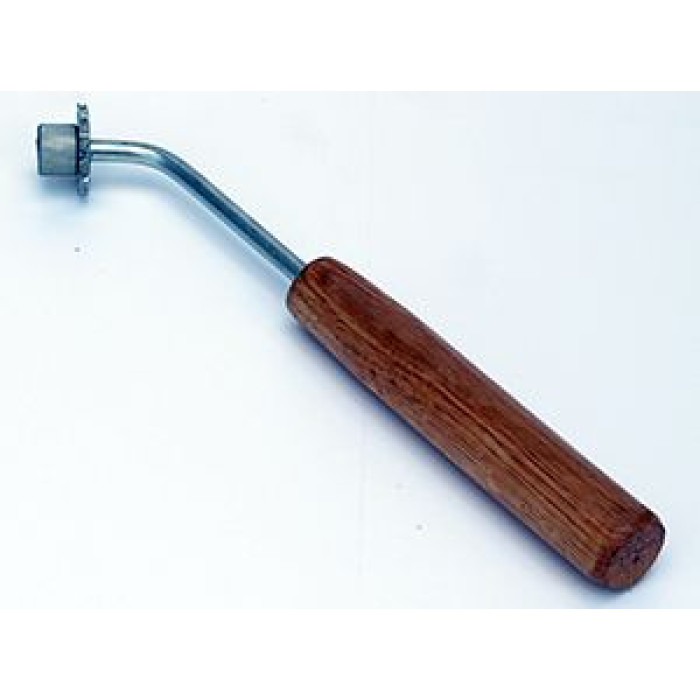 Конструкція включає металевий стержень, до якого прикріплені валик та диск із зубами, а також дерев'яну ручку.