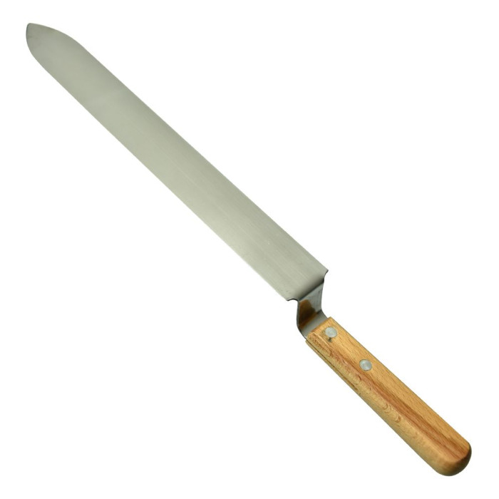 Ніж пасічний – один із основних інструментів бджоляра. Це незамінний помічник пасічника у процесі розпечатування стільників перед відкачуванням меду. Модель ножа K02 має гладкі гострі леза з обох боків і дерев’яну ручку. Металева частина виробу виготовлена з нержавійки.
