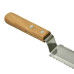 Модель ножа K02-2 з обох боків леза має зубчасту форму заточки. Металева частина виготовлена з нержавійки, ручка – дерев’яна.