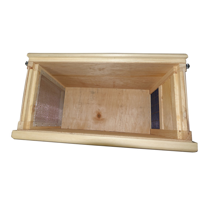 Виготовлений рамконос-роївня з міцного легкого дерева. З однієї сторони вмонтована пластикова решітка, а з іншого дрібна металева сітка, які закриваються дерев’яними засувками. Завдяки наявності вентиляційних решіток, зловлений рій можна транспортувати на великі відстані, перед тим давши бджолам кормову рамку. Кришка закривається металевими защіпками. На кришці є зручна надійна ручка, що так важливо при перенесенні зловленого рою чи відібраних рамок на відкачування.