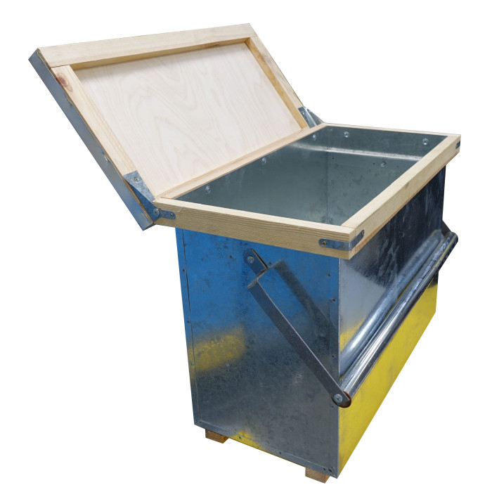 Ящик виготовлений з оцинкованої сталі і дерев’яного каркасу. Комплектація передбачає із ящика, кришки на завісах і зручної металевої ручки. Ящик вміщає 6 рамок Дадан.