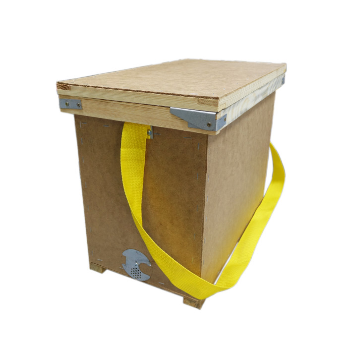Ящик вміщає 6 рамок Дадан. Зроблений з ДВП та дерев’яних планок.