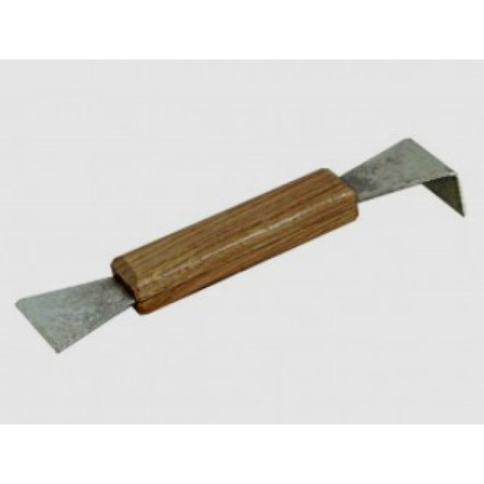 Металева основа з одної сторони пряма та загострена на кінці, а з іншої зігнута під прямим кутом. Має розширення на кінцях для зручного використання.