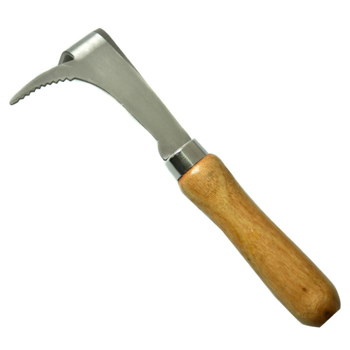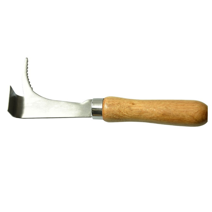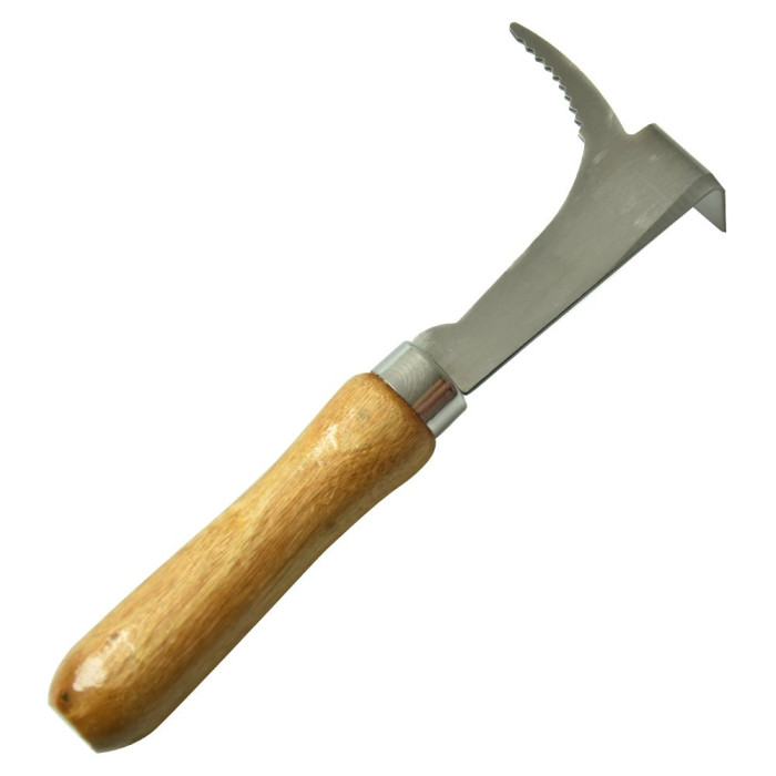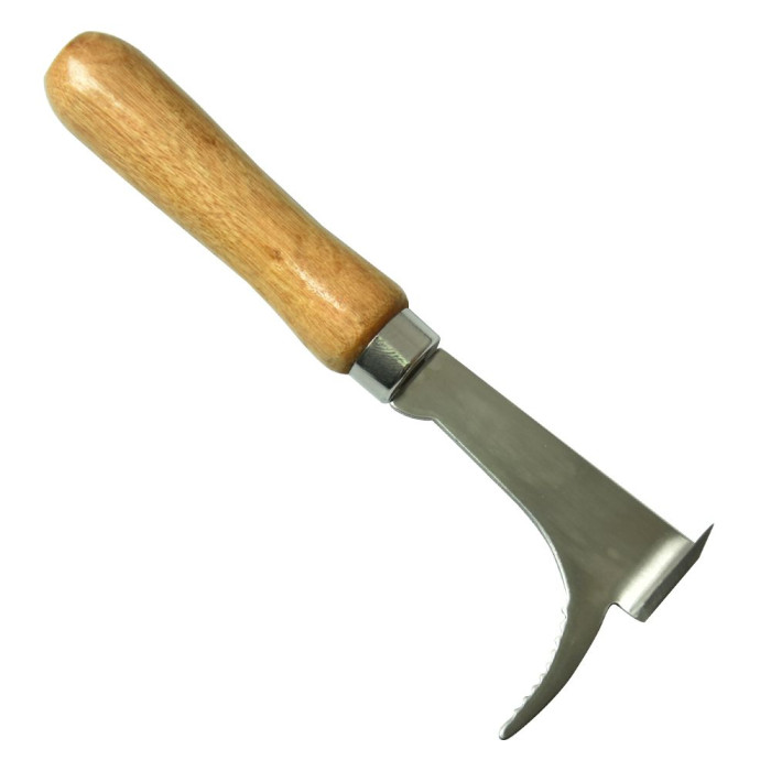 Стамеска пасічна – один із основних інструментів бджоляра і його незамінний помічник при огляді вуликів. Модель Т17 – практичний варіант такого знаряддя зі спеціальним зубчастим гачком для підважування рамок, Г-подібним вигином з загостреним лезом і зручною дерев’яною ручкою. Це пристосування допоможе відокремлювати елементи вулика один від одного, роз’єднувати і очищувати деталі, склеєні воском і прополісом, а також виймати рамки з корпуса.