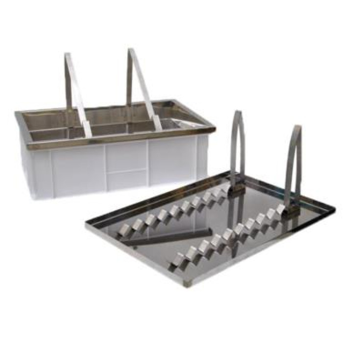 Дана ванночка для розпечатування стільників складається з пластикового корпусу та металевого вкладиша. Вкладиш має перфороване дно, яке фільтрує мед. Кришку ванночки можна використовувати в якості стійки для 10 рамок.