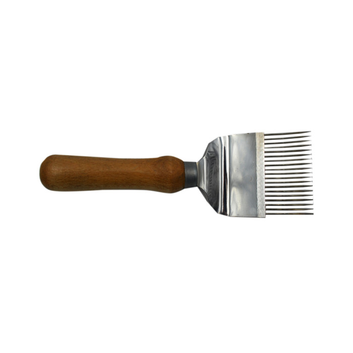Опис Вилка для розпечатування медових щільників 19 голок (голки з перегином), ручка дерев’яна