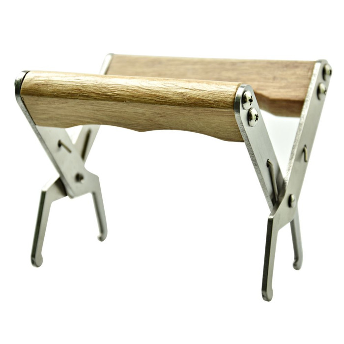 Тримач для рамок FG07 – зручний пасічний інструмент, що допомагає бджоляреві швидко та легко виймати рамки з вуликів. Його металева частина виготовлена з нержавіючої сталі японського промислового стандарту SUS201 – міцного, твердого та стійкого до корозії і механічних пошкоджень матеріалу. Щипці тримача мають гачкоподібну форму, завдяки якій надійно фіксують і утримують рамку.