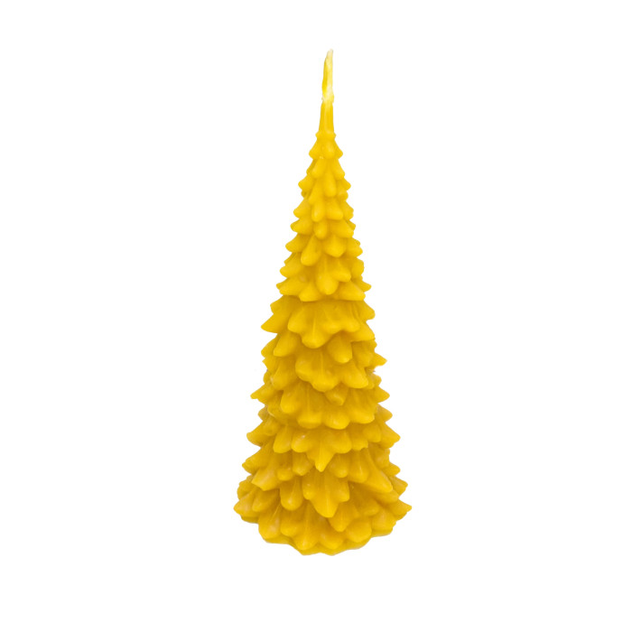 Свічка "Ялинка середня" виготовлена вручну з натурального бджолиного воску. Свічки з чистого бджолиного воску горять повільніше, ніж інші види свічок. Бджолиний віск горить яскравіше, чистіше та очищає повітря під час горіння. Свічки з бджолиного воску - найчистіші свічки, які ви можете купити. Коли бджолиний віск горить, він виділяє негативні іони, які затримують пил і сміття в повітрі, роблячи Ваше повітря чистішим. Бджолиний віск при горінні не димить і має легкий приємний медовий аромат, який додається природним шляхом бджолами, що виробляють віск. Запах легкий і ніжний і для декого майже не відчувається, інші ж, навпаки, відчувають явний запах меду та воску.