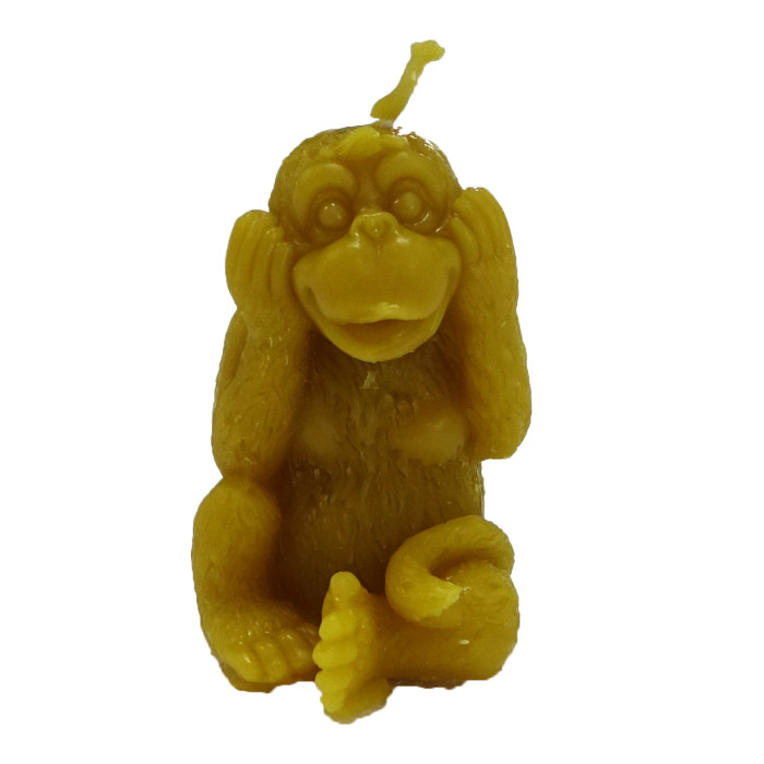 Свічка “Мавпочка” ручної роботи, виготовлена з натурального бджолиного воску. Має приємний запах воску та меду, яким наповнить кімнату під час горіння. Не виділяє токсичні речовини. Час горіння у воскових свічок значно довший, ніж у парафінових. Екологічно чиста, оскільки при виготовлені не додають барвники і ароматизатори.