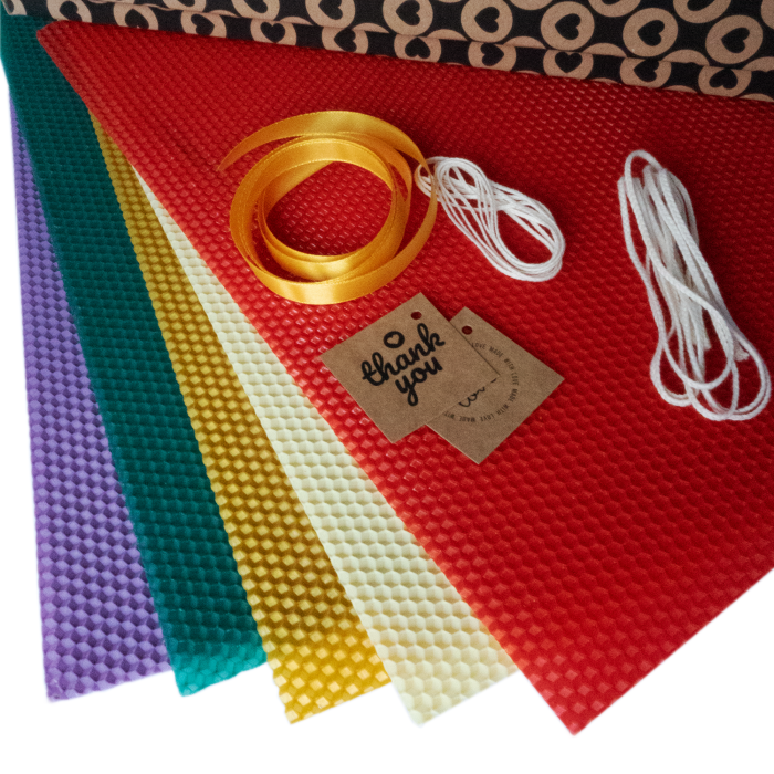 Дозвольте Вашій креативності проявитись у процесі виготовлення свічок з вощини. Кольорова вощина для виготовлення свічок стала популярною відносно недавно. Робити свічки з кольорової вощини дуже зручно, не потрібні додаткові інструменти, просто вставте гніт і скрутіть лист у свічку. При виготовленні вощини використовують тільки органічні барвники, щоб не втратити неповторний медовий аромат, що виходить від воскового листа. Такий набір стане чудовим подарунком для Ваших близьких і друзів.