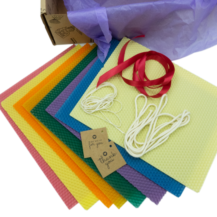 Дозвольте Вашій креативності проявитись у процесі виготовлення свічок з вощини. Кольорова вощина для виготовлення свічок стала популярною відносно недавно. Робити свічки з кольорової вощини дуже зручно,  не потрібні додаткові інструменти, просто вставте гніт і скрутіть лист у свічку. При виготовленні вощини використовують тільки органічні барвники, щоб не втратити неповторний медовий аромат, що виходить від воскового листа. Такий набір стане чудовим подарунком для Ваших близьких і друзів.