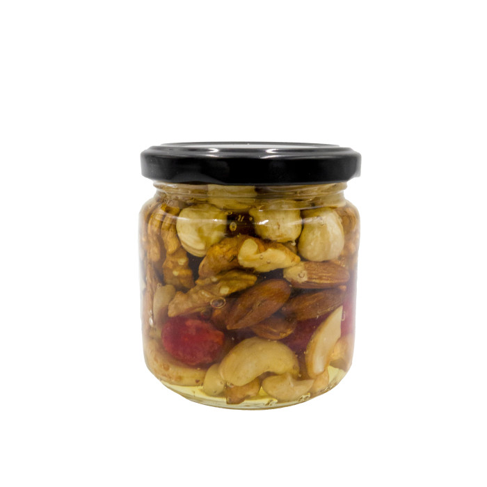 Кожна ложка цього асорті переносить Вас у світ гармонії та насолоди. Мед ніжно огортає горішки та вишню, розкриваючи їхній смак у новому світлі.