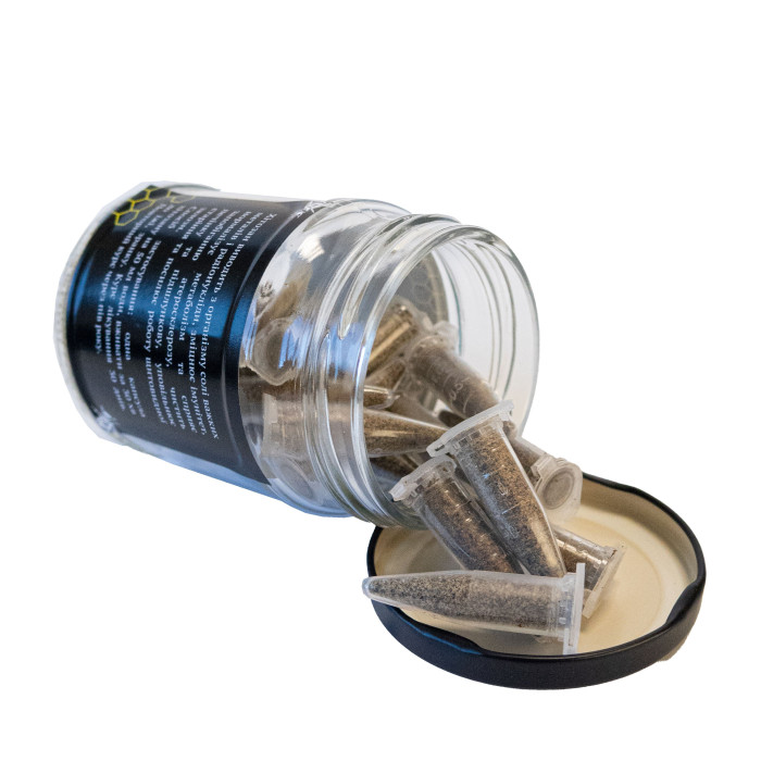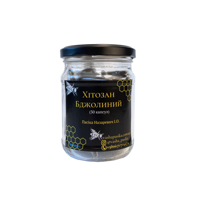 Хітозан бджолиний – це біологічно активна речовина з сушеного підмору медоносних бджіл, яка має широкий спектр корисних властивостей та здатність позитивно впливати на людський організм і його фізіологічні процеси. На вигляд це дрібнозерниста мелена суміш, розфасована у пластикові капсули.