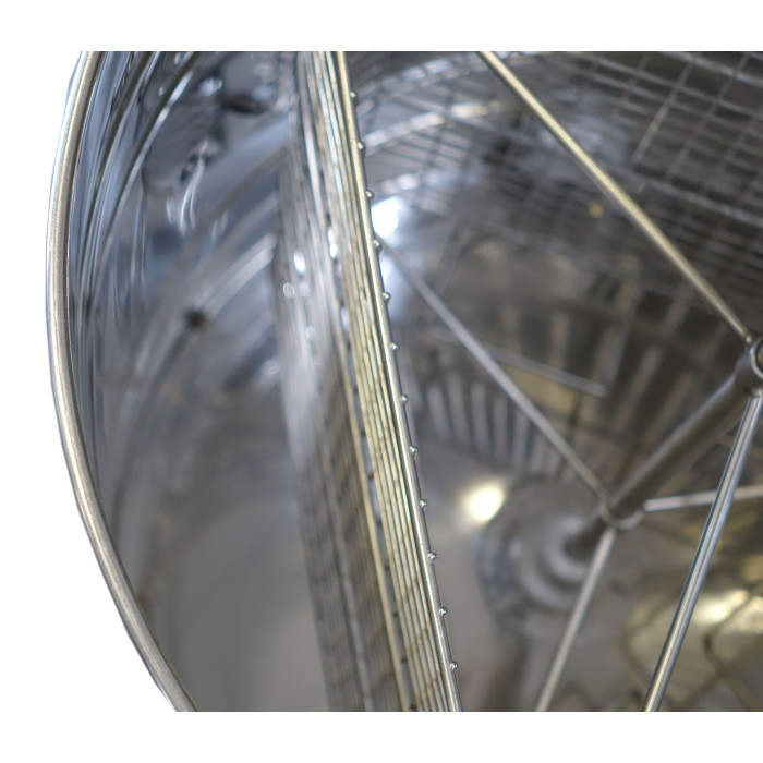 Кошик зроблений із нержавіючих, кислотностійких прутів, завдяки відповідному поєднанню прутів стільники надійно захищені від руйнування під час обертання кошика.