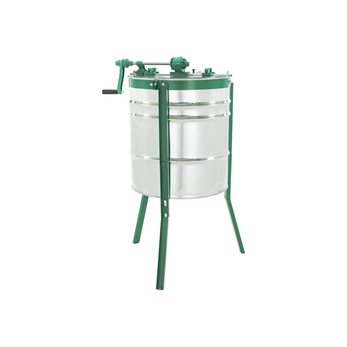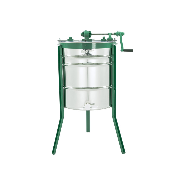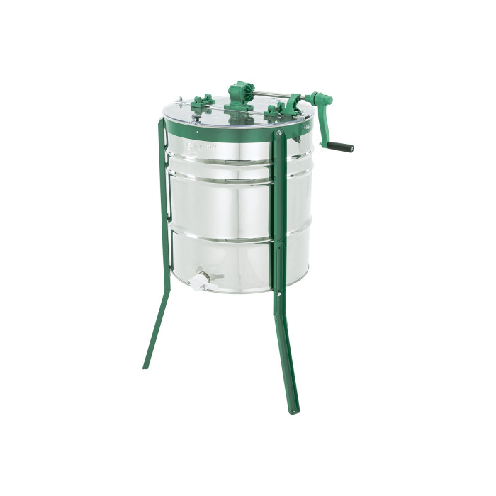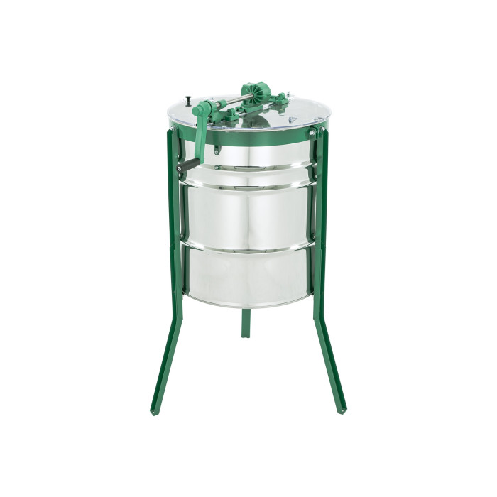 Прозора кришка дозволяє контролювати процес відкачування, а конусне дно забезпечує повне та чисте зливання меду. Завдяки стійким ніжкам медогонка працює стабільно, не вібрує та не зміщується під час обертання.