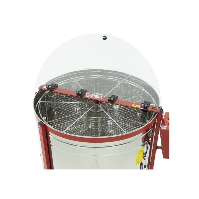 Кришка прозора, виготовлена із органічного скла. Це дозволяє спостерігати за роботою медогонки, не відкриваючи її. Кришка захищає медогонку від бджіл, пилу та від попадання всередину сторонніх предметів при обертанні медогонки.