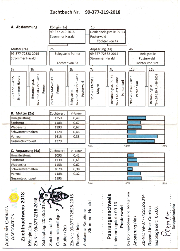 Походження чистопородного матеріалу від кращих селекціонерів Німеччини та Австрії, а саме інститут Маєнн Кірхайн