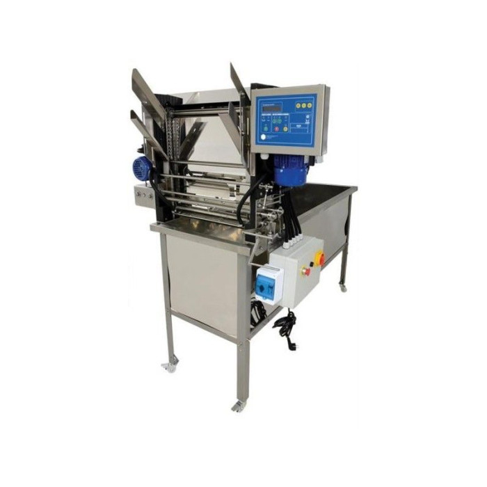 Цей стіл для розпечатування медових рамок підійде для пасік з великою кількістю продукції. Він автоматично подає рамки на два ножі з підігрівом, які розпечатують 4 рамки за хвилину. Пасічнику залишається лише завантажувати запечатані рамки та готувати розпечатані рамки до відкачування меду.