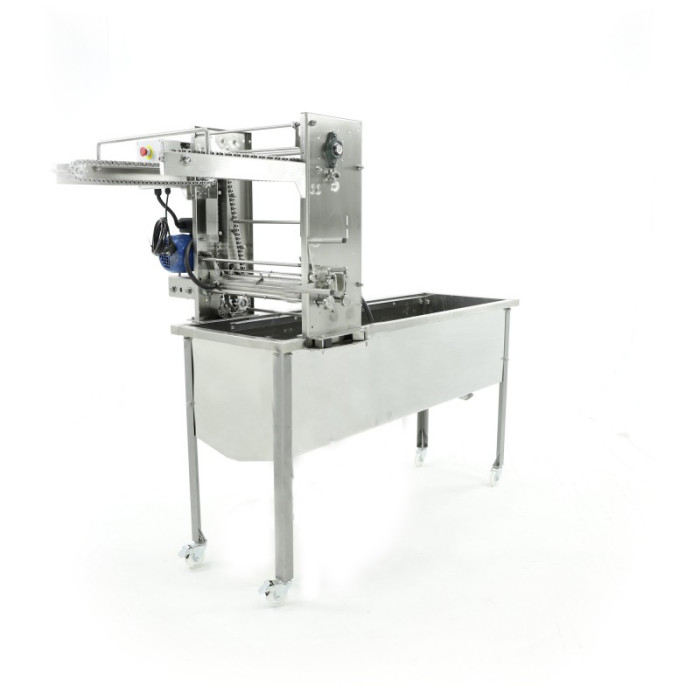 Ви зацікавлені в ефективному вдосконаленні та збільшенні темпів роботи з бджільництва? Водночас, чи хотіли б Ви зберегти якість виробленого меду на найвищому рівні? Можливе поєднання обох зазначених елементів. Використовуйте на своїй пасіці повністю інноваційні столи для розпечатування виробництва LYSON. Завдяки нашим технічним рішенням робота на вашій пасіці дійсно може прискоритись - заощаджуючи сили та час вашої бригади. Наші машини для розпечатування виготовлені з найякіснішої кислотостійкої нержавіючої сталі. До цього столу ви можете додатково придбати парогенератор, бак з нагрівачем, шланг, що подає до ножів пару, і спеціальний контейнер для конденсату. Ця модель також має професійний блок управління. Рамки, запечатані воском, встановлюються на спеціальному конвеєрі, який транспортує їх до ножів. Ножі плавними рухами зрізають верхній шар воску. Наша команда досвідчених дизайнерів гарантує, що розроблені пристрої відповідають найвищим стандартам якості сучасної бджільницької галузі. Використовуйте сучасні пристрої LYSON.