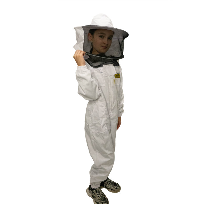 Комбінезон пасічний, дитячий, з капелюхом і лицьовою сіткою.