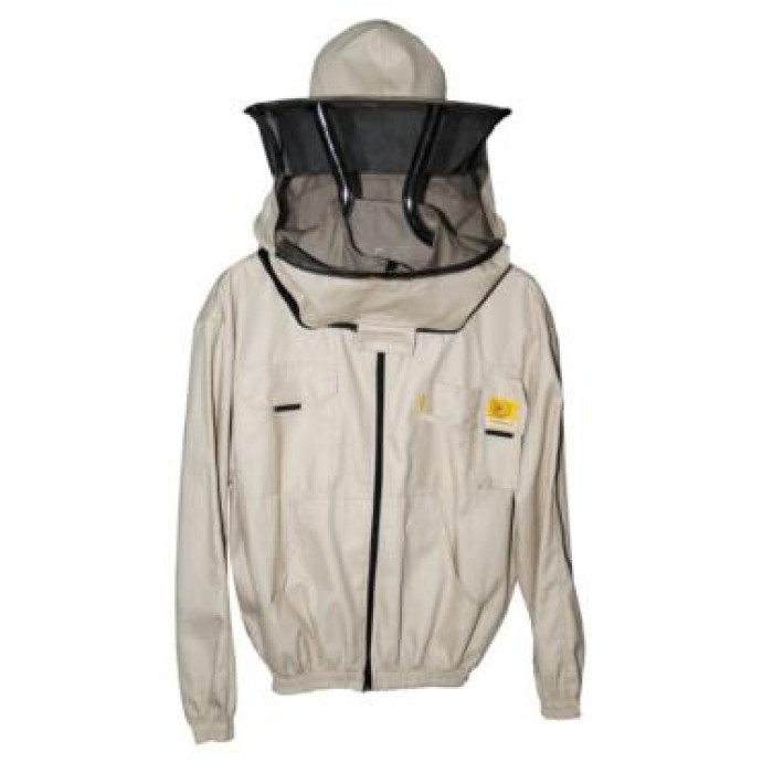 Модель виробляється з тканини підвищеної щільності, а для зручного знімання і надягання передбачена застібка-блискавка. У комплект входить капелюх круглої форми із спеціального сітчастого матеріалу - для його закріплення досить застебнути спеціальну блискавку, а додаткову фіксацію забезпечують два кільця з нержавіючої сталі. З боків і на грудях куртки є кишені, а наявність манжет на поясі та рукавах мінімізує ризик безпосереднього контакту з бджолами.