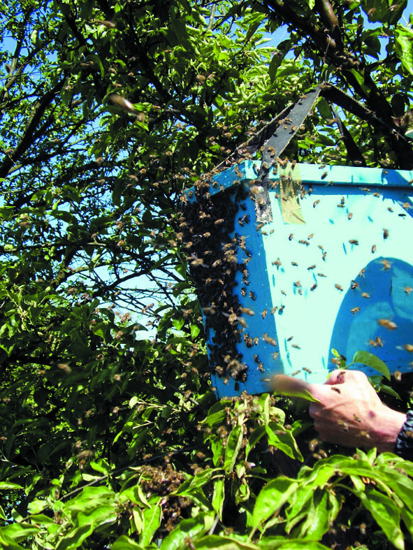 Ящик опускають на землю, і якщо у нього потрапила матка, то бджоли самі злетяться до у ящик до матки через певний час. Якщо ж матка не буде у ящику, то бджоли рою, найімовірніше, повернуться на те ж місце, де попередньо сидів рій. У такому разі потрібно повторно струсити бджіл у ящик і чекати, доки вони зберуться у ньому. Коли всі бджоли зібралися у ящик, його накривають засіткованою кришкою або відкривають у ньому вентиляцію і переносять у темне прохолодне місце, наприклад, у підвал. Перед вечором, коли бджоли у ящику заспокояться, бджіл пересаджують у завчасно підготовлений вулик на пасіці.