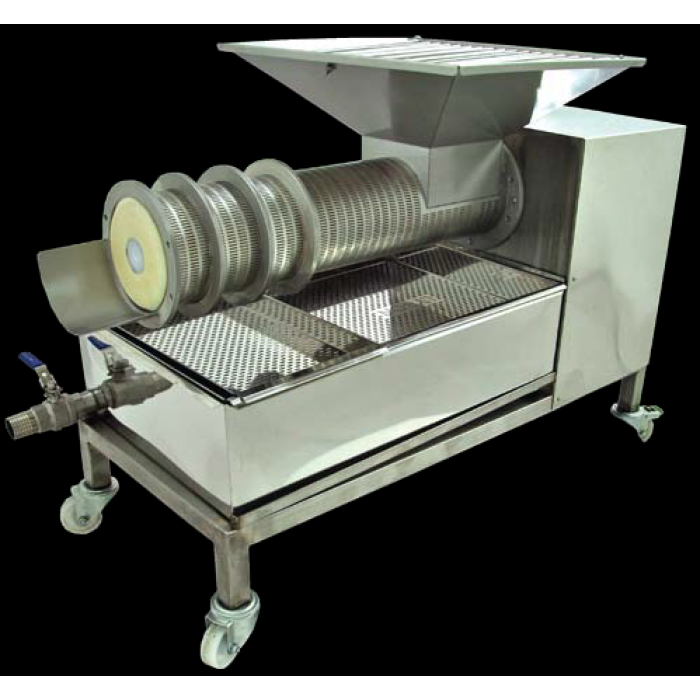 Все элементы экструдера изготовлены из нержавеющей стали, устойчивой к кислотной среде. В конструкции предусмотрены колеса для более удобной транспортировки. Благодаря продуманному механизму сепарации экструдер прост в эксплуатации и эффективно работает при относительно небольшом размере.
