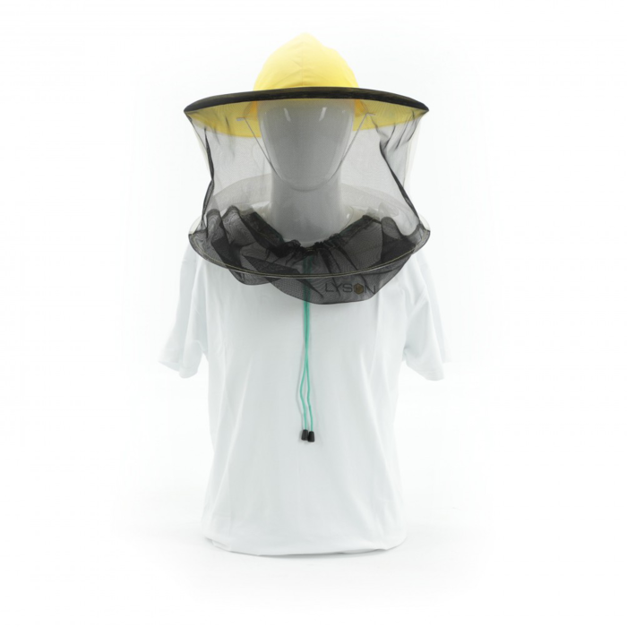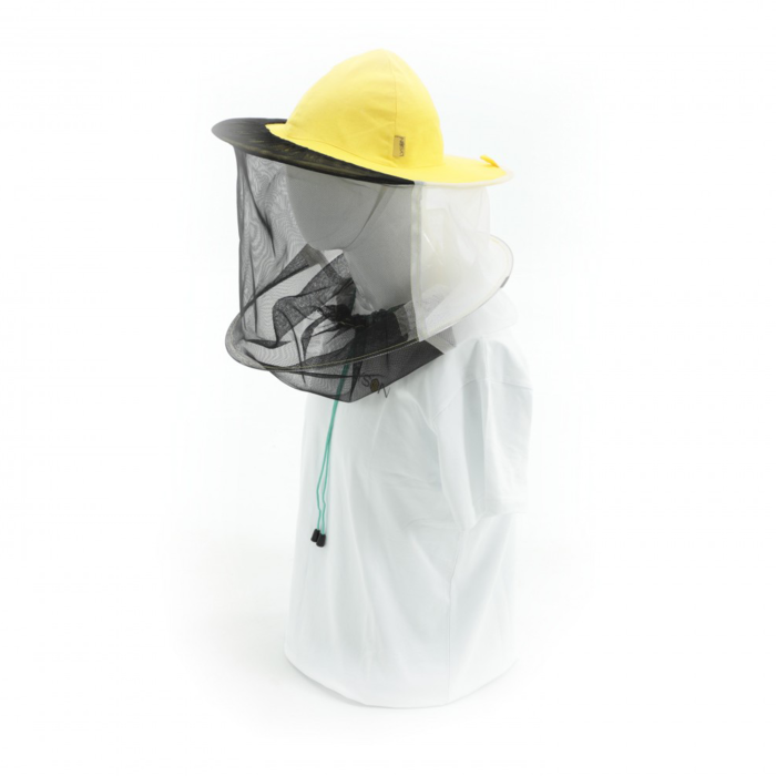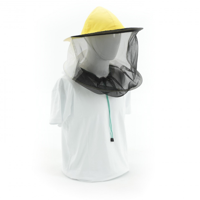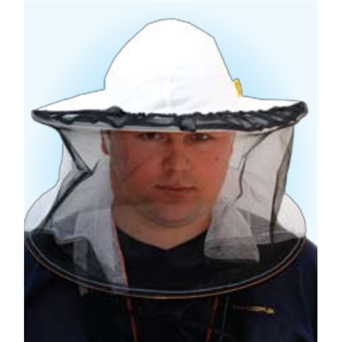 Модель 602500 – удобный и качественный вариант шляпы, что защищает от укусов насекомых и от солнца. Изготовлен он из плотной белой ткани и защитной сетки, что закреплена вокруг шляпы на крепких металлических кольцах. Кольца создают надежный защитный каркас на расстоянии от лица, а сетка обеспечивает хорошую вентиляцию, так что работать в среде пчел можно уверенно и комфортно. Чтобы насекомым не удалось попасть внутрь головного убора, нижняя часть шляпы стягивается в воротниковой зоне шеи специальным шнуром.