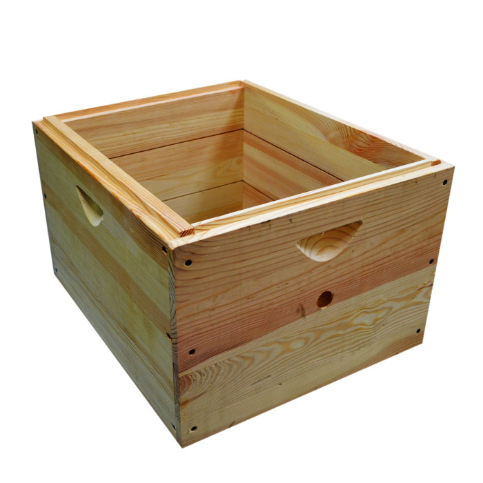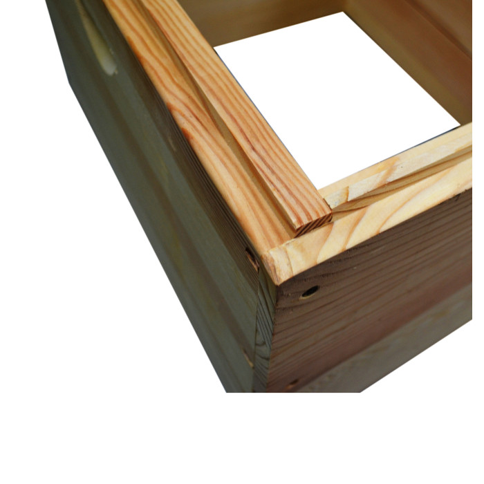 Корпус Дадан на 10 рамок выполнена с верхним и нижним фальцем высотой 10 мм и толщиной стенки 35 мм. Материал изготовления - сосновая доска.