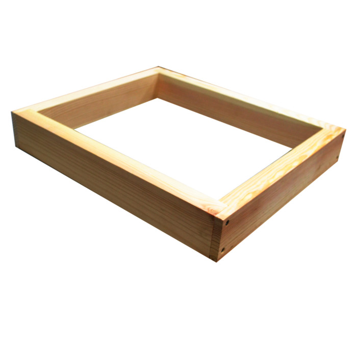 Деревянный подкрышик на улей Дадан на 10 рамок изготовлен из сосновой доски. Это прямоугольная конструкция, состоящая из четырех деревянных планок, скрепленных между собой. Такой навес продается без потолочных дощечек. Назначение этого элемента - увеличение пространства между рамками и крышей улья, который можно использовать для размещения утеплителя или кормушки.
