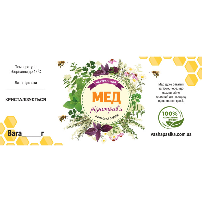 Етикетка Мед Різнотрав'я