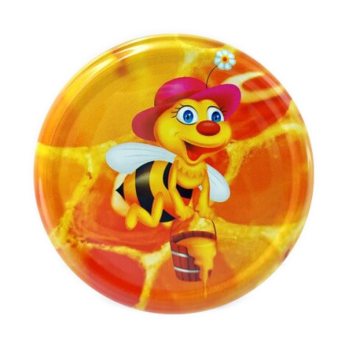 Зовнішній вигляд Ваших скляних банок прикрасять металеві кришки. Кришка виготовлена з легкого металу, що гарантує її щільність та надійність для безпечного зберігання Вашого меду. А оригінальний тематичний малюнок у вигляді веселої бджілки з відерцем меду відразу приверне увагу покупця.