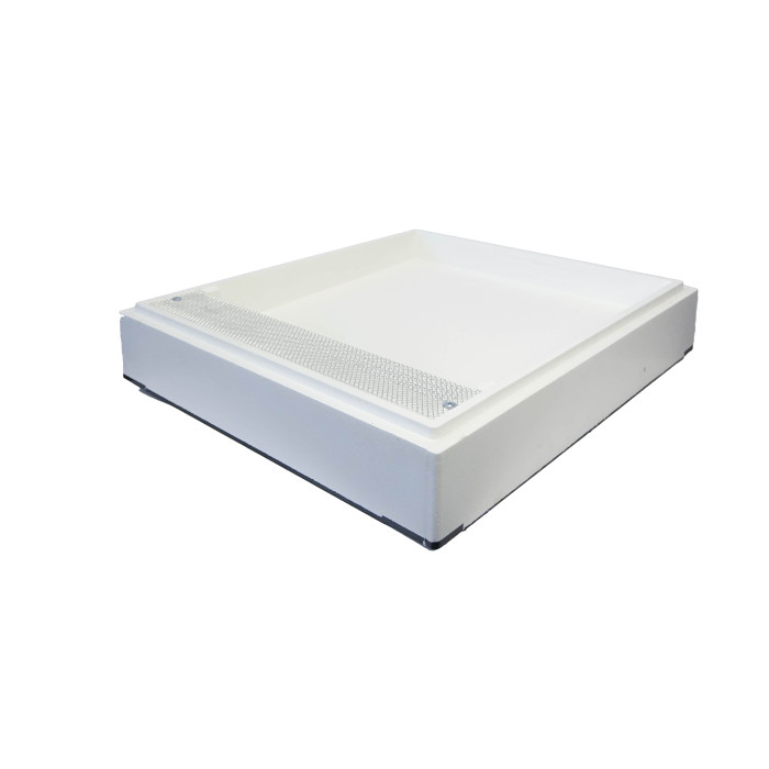 Купити корпусну годівницю можна власникам 10-рамкового вулика LYSON. Годівницю встановлюють на верхній корпус під стелею та дашком. Основними перевагами такої годівниці є великий об‘єм та швидкий доступ.