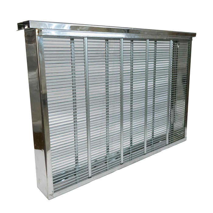 Конструкція ізолятора розрахована на одну рамку типу Дадан (435×300 мм) і забезпечує надійне обмеження переміщення матки. Бічні стінки виконані з металевої роздільної решітки, яка має оптимальний розмір отворів: робочі бджоли вільно проходять, а матка — залишається всередині.