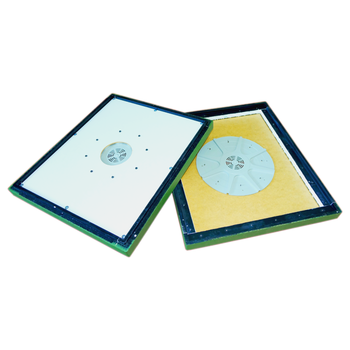 Перехідний пояс з бджоловидалячем призначений для звільнення медових корпусів від бджіл. Підходить для 10-рамкового піно полістирольного вулика LYSON. Пофарбований у зелений колір.