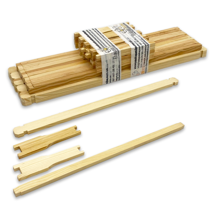 Рамки продаються у вигляді заготовок. Комплект налічує планки для збору десяти рамок Дадлан ½.
