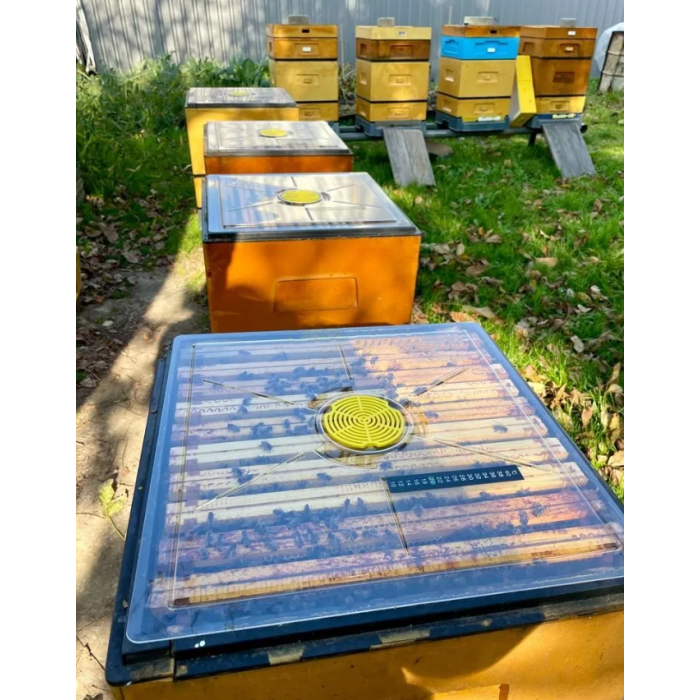 Правильна температура у вулику є запорукою міцної і здорової сім'ї. Використання панорамної стелі з термометром гарантує високу ефективність вимірювань до 97%. Після підйому дашка Ви отримуєте миттєву інформацію про те, що відбувається у вашому вулику. Матеріал стійкий до всіх видів кислот, які використовуються при лікуванні бджіл. При дозуванні ліків Ви маєте можливість миттєвого огляду реакції бджіл.